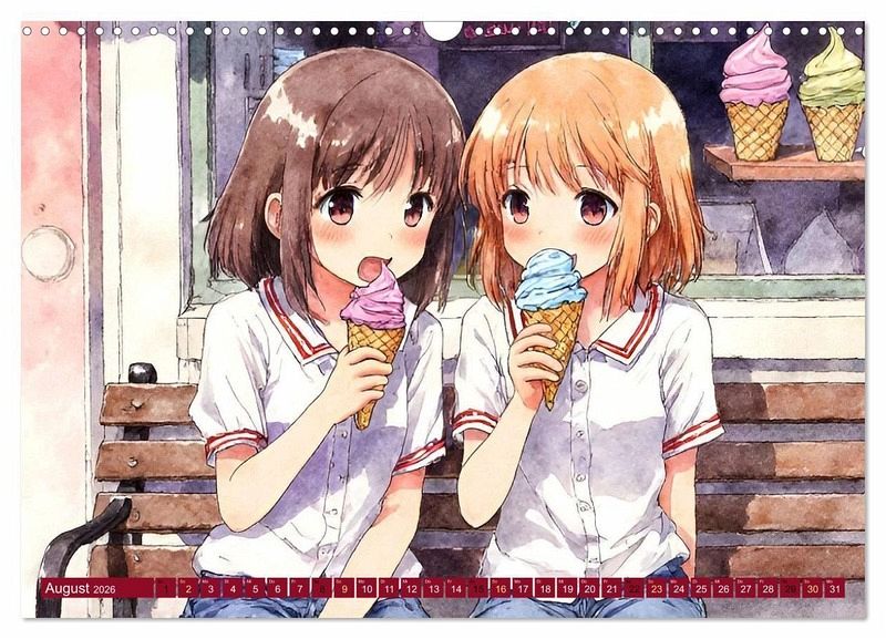 12 einzigartige Manga-Illustrationen (Januar-Dezember)