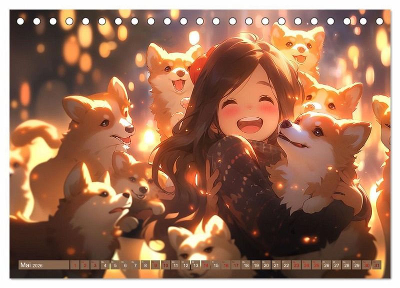 Auf jedem Blatt des Kalenders füllen die Mädchen mit ihren großen, strahlenden Augen und ihrem liebevollen Blick die Szene aus, während sie eng mit ihren tierischen Begleitern interagieren. Ob es sich um niedliche Kätzchen, treue Hunde oder exotische Vögel handelt - die Bindung zwischen den Mädchen und ihren Tieren wird auf faszinierende Weise dargestellt.