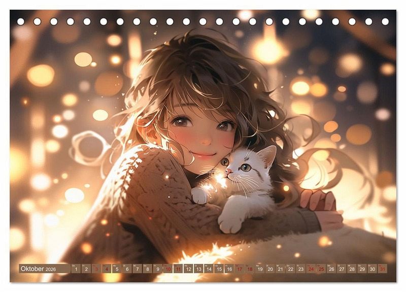 Dieser fesselnde Kalender entführt Sie in eine wundervolle Welt der Manga-Kunst, in der Mädchen eine tiefe Liebe und Zuneigung für Tiere zeigen. Jeder Monat wird von einem einzigartigen Bild geziert, das die harmonische Beziehung zwischen Mädchen und ihren tierischen Gefährten einfängt. Die lebendigen Manga-Illustrationen sind voller Ausdruckskraft und erzählen herzerwärmende Geschichten von Freundschaft, Vertrauen und Abenteuer.