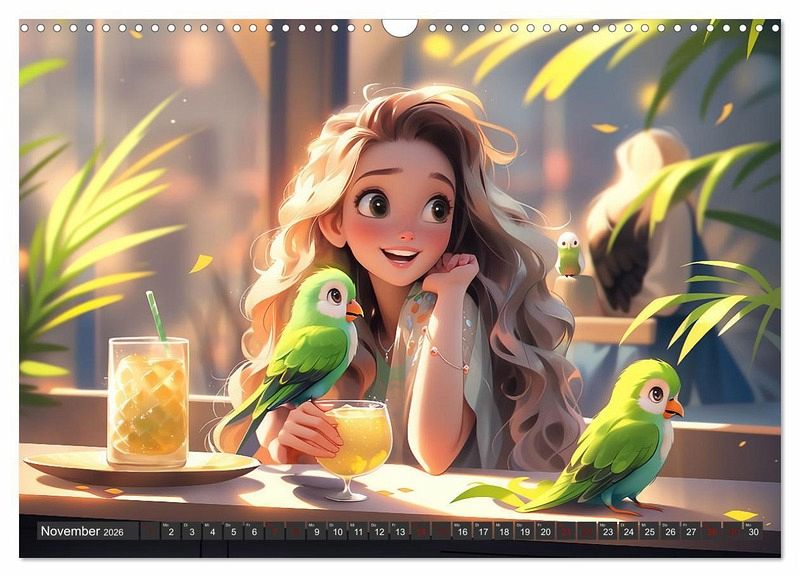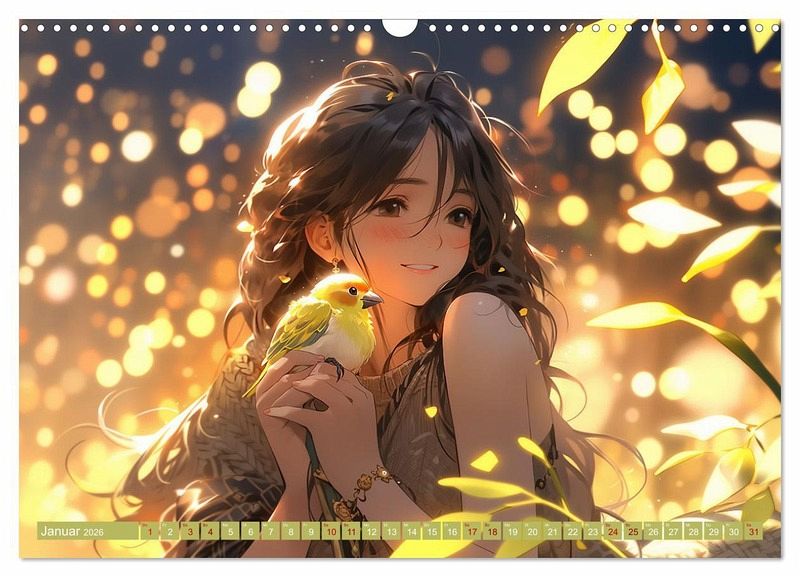 Auf jedem Blatt des Kalenders füllen die Mädchen mit ihren großen, strahlenden Augen und ihrem liebevollen Blick die Szene aus, während sie eng mit ihren tierischen Begleitern interagieren. Ob es sich um niedliche Kätzchen, treue Hunde oder exotische Vögel handelt - die Bindung zwischen den Mädchen und ihren Tieren wird auf faszinierende Weise dargestellt.