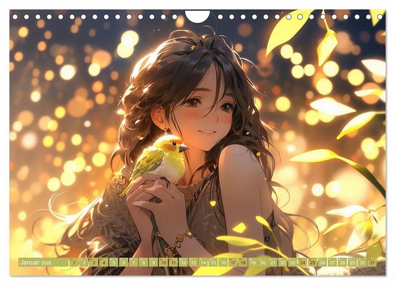Auf jedem Blatt des Kalenders füllen die Mädchen mit ihren großen, strahlenden Augen und ihrem liebevollen Blick die Szene aus, während sie eng mit ihren tierischen Begleitern interagieren. Ob es sich um niedliche Kätzchen, treue Hunde oder exotische Vögel handelt - die Bindung zwischen den Mädchen und ihren Tieren wird auf faszinierende Weise dargestellt.