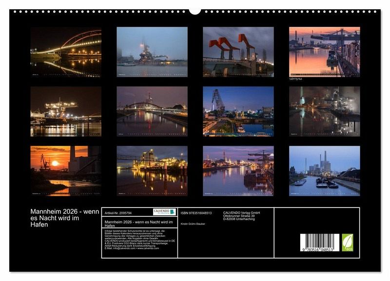 PREMIUM-LINIE - Brillanter Fotokalender mit 12 wunderschönen Motiven, Kunstdruck in Hochglanz in Museumsqualität.QUALITÄT - edle Materialien, stabile Rückwand mit 2 innovativen Einstecktaschen für eine optimale Präsentation an der Wand.NACHHALTIG - deutliche Abfallreduzierung durch bedarfsgerechte Einzelstückfertigung, umweltfreundliches FSC-zertifiziertes Papier, Produktion in Deutschland, klimabewusste Logistik.PERFEKTES GESCHENK - Kalender für Freunde und Familie, für Kinder und Erwachsene, jung und alt, zu Weihnachten, Geburtstag oder zwischendurch.Nächtliche Impressionen aus dem Mannheimer Hafen von Autor(in): Kirstin Grühn-Stauber