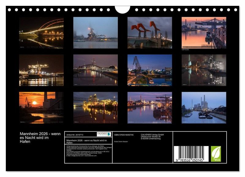 QUALITÄT - Hochwertiger Fotokalender mit 12 wunderschönen Motiven auf lichtbeständigem Bilderdruckpapier, robuste Spiralbindung mit Aufhängebügel.NACHHALTIG - deutliche Abfallreduzierung durch bedarfsgerechte Einzelstückfertigung, umweltfreundliches FSC-zertifiziertes Papier, Produktion in Deutschland, klimabewusste Logistik.PERFEKTES GESCHENK - Kalender für Freunde und Familie, für Kinder und Erwachsene, jung und alt, zu Weihnachten, Geburtstag oder zwischendurch.VIELFALT - Bildkalender in verschiedenen Formaten, z.B. DIN A5, DIN A4, DIN A3 sowie DIN A2. Ob Naturmotiv, Gemälde oder Fotos, ideal für ein persönliches Wohlfühlambiente.Nächtliche Impressionen aus dem Mannheimer Hafen von Autor(in): Kirstin Grühn-Stauber