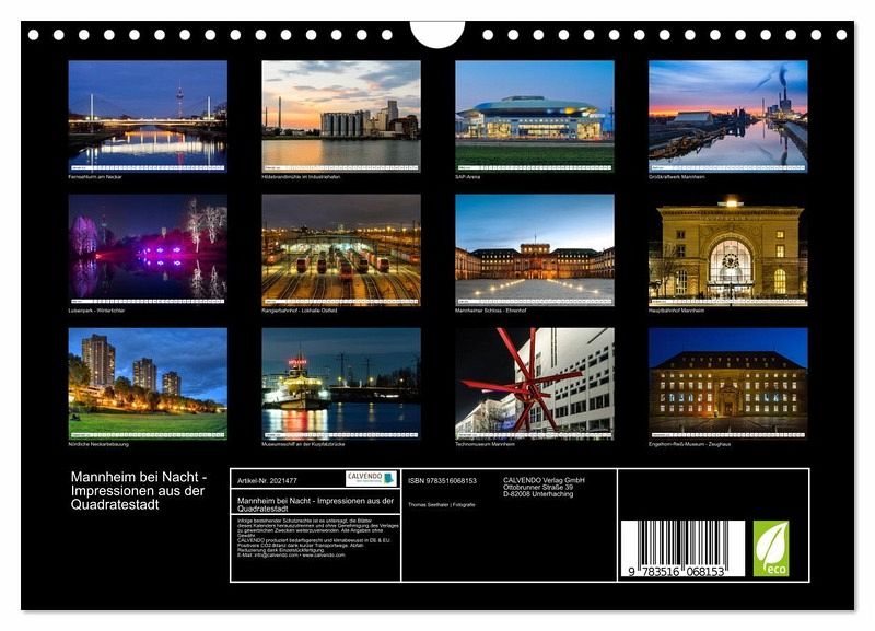 QUALITÄT - Hochwertiger Fotokalender mit 12 wunderschönen Motiven auf lichtbeständigem Bilderdruckpapier, robuste Spiralbindung mit Aufhängebügel.NACHHALTIG - deutliche Abfallreduzierung durch bedarfsgerechte Einzelstückfertigung, umweltfreundliches FSC-zertifiziertes Papier, Produktion in Deutschland, klimabewusste Logistik.PERFEKTES GESCHENK - Kalender für Freunde und Familie, für Kinder und Erwachsene, jung und alt, zu Weihnachten, Geburtstag oder zwischendurch.VIELFALT - Bildkalender in verschiedenen Formaten, z.B. DIN A5, DIN A4, DIN A3 sowie DIN A2. Ob Naturmotiv, Gemälde oder Fotos, ideal für ein persönliches Wohlfühlambiente.Mannheim bei Nacht von Autor(in): Thomas Seethaler