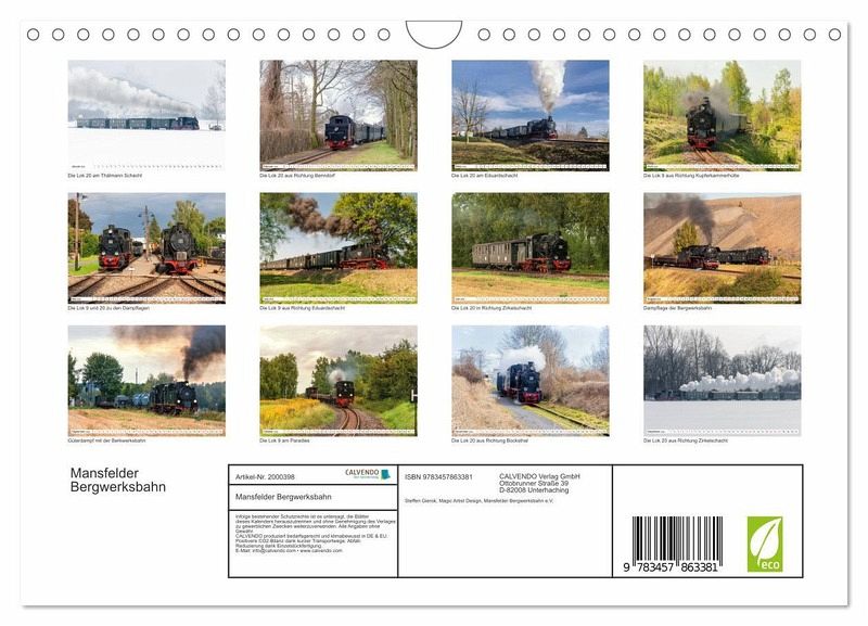 QUALITÄT - Hochwertiger Fotokalender mit 12 wunderschönen Motiven auf lichtbeständigem Bilderdruckpapier, robuste Spiralbindung mit Aufhängebügel.NACHHALTIG - deutliche Abfallreduzierung durch bedarfsgerechte Einzelstückfertigung, umweltfreundliches FSC-zertifiziertes Papier, Produktion in Deutschland, klimabewusste Logistik.PERFEKTES GESCHENK - Kalender für Freunde und Familie, für Kinder und Erwachsene, jung und alt, zu Weihnachten, Geburtstagoder zwischendurch.VIELFALT - Bildkalender in verschiedenen Formaten, z.B. DIN A5, DIN A4, DIN A3 sowie DIN A2. Ob Naturmotiv, Gemälde oder Fotos, ideal für ein persönliches Wohlfühlambiente.Die Mansfelder Bergwerksbahn, die älteste noch betriebsfähige Schmalspurbahn Deutschlands. von Autor(in): Steffen Gierok ; Magik Artist Design