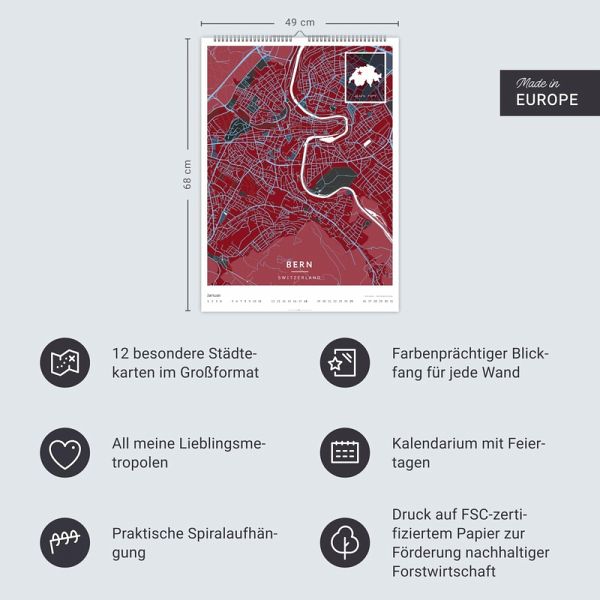 - Metropolen, wie man sie noch nie gesehen hat: Map Art-Landkartenkalender 2026- Die Welt von Oben als Kartographie-Genuss: Kunstvoll gestaltete Stadtpläne- Für alle Liebhaber von moderner Kartenkunst und ausgefallenen Interior-Ideen: Großer Wandkalender mit Farbkontrasten als Eye-Catcher - Der Blickfang für stilvolles Wohnen: Wandkalender XXL im Format 49 x 68 cm, der jedem Kartenposter Konkurrenz macht- Beeindruckende Bildqualität und stilsichere Motivauswahl: Die Kunstkalender von Weingarten im Athesia Kalenderverlag