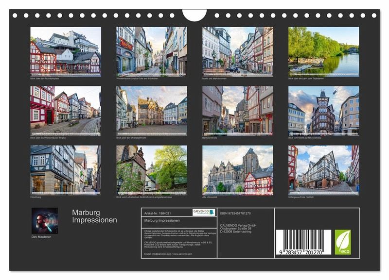 QUALITÄT - Hochwertiger Fotokalender mit 12 wunderschönen Motiven auf lichtbeständigem Bilderdruckpapier, robuste Spiralbindung mit Aufhängebügel.NACHHALTIG - deutliche Abfallreduzierung durch bedarfsgerechte Einzelstückfertigung, umweltfreundliches FSC-zertifiziertes Papier, Produktion in Deutschland, klimabewusste Logistik.PERFEKTES GESCHENK - Kalender für Freunde und Familie, für Kinder und Erwachsene, jung und alt, zu Weihnachten, Geburtstag oder zwischendurch.VIELFALT - Bildkalender in verschiedenen Formaten, z.B. DIN A5, DIN A4, DIN A3 sowie DIN A2. Ob Naturmotiv, Gemälde oder Fotos, ideal für ein persönliches Wohlfühlambiente.Ein wunderschöner zwölf Monatskalender der Stadt Marburg von Autor(in): Dirk Meutzner