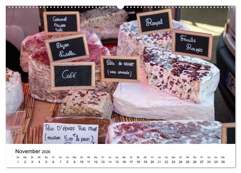 Wochenmärkte sind in Frankreich sehr beliebt. Es gibt dort eine Vielfalt an frischen Lebensmitteln und die Händler achten darauf, ihre Waren ansprechend zu präsentieren. Schon deswegen ist ein Gang über einen solchen Wochenmarkt ein Erlebnis. Die gezeigten Fotos wurden auf Wochenmärkten in der Bretagne aufgenommen. Abgesehen von den Gewürzen stammen die Produkte aus Frankreich. Viele der angebotenen Waren werden in der Region produziert. Daneben gibt es auch Waren aus anderen Regionen wie z.B. das Obst aus dem Süden oder den Nougat, eine Spezialität aus Montélimar in der Provence.