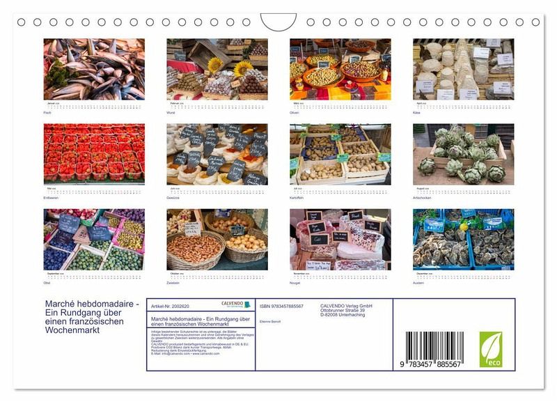 QUALITÄT - Hochwertiger Fotokalender mit 12 wunderschönen Motiven auf lichtbeständigem Bilderdruckpapier, robuste Spiralbindung mit Aufhängebügel.NACHHALTIG - deutliche Abfallreduzierung durch bedarfsgerechte Einzelstückfertigung, umweltfreundliches FSC-zertifiziertes Papier, Produktion in Deutschland, klimabewusste Logistik.PERFEKTES GESCHENK - Kalender für Freunde und Familie, für Kinder und Erwachsene, jung und alt, zu Weihnachten, Geburtstag oder zwischendurch.VIELFALT- Bildkalender in verschiedenen Formaten, z.B. DIN A5, DIN A4, DIN A3 sowie DIN A2. Ob Naturmotiv, Gemälde oder Fotos, ideal für ein persönliches Wohlfühlambiente.Ein Besuch auf einem Wochenmarkt ist allein wegen der schön dekorierten Stände ein Erlebnis. von Autor(in): Etienne Benoît