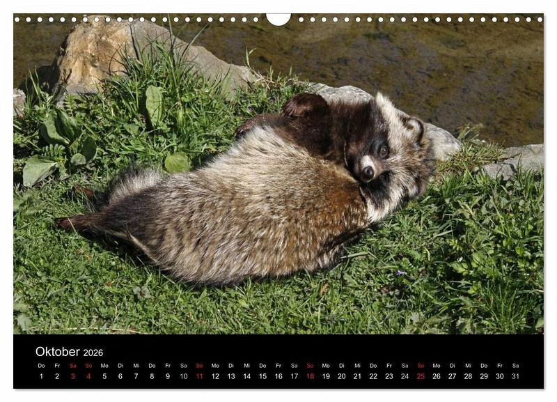 Lassen Sie sich von den putzigen Marderhunden durch das Jahr begleiten und erfreuen Sie sich Monat für Monat an den Fotos der niedlichen, pelzigen Einwanderer, die den Waschbären so ähnlich sehen.