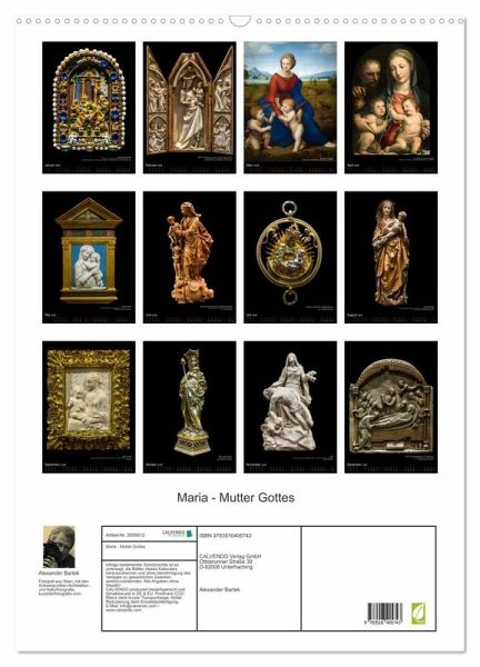 QUALITÄT - Hochwertiger Fotokalender mit 12 wunderschönen Motiven auf lichtbeständigem Bilderdruckpapier,robuste Spiralbindung mit Aufhängebügel.NACHHALTIG - deutliche Abfallreduzierung durch bedarfsgerechte Einzelstückfertigung, umweltfreundliches FSC-zertifiziertes Papier, Produktion in Deutschland, klimabewusste Logistik.PERFEKTES GESCHENK - Kalender für Freunde und Familie, für Kinder und Erwachsene, jung und alt, zu Weihnachten, Geburtstag oder zwischendurch.VIELFALT - Bildkalender in verschiedenen Formaten, z.B. DIN A5, DIN A4, DIN A3 sowie DIN A2. Ob Naturmotiv, Gemälde oder Fotos, ideal für ein persönliches Wohlfühlambiente.Die hl. Maria - in verschiedenen Darstellungsformen der Kunst von Autor(in): Alexander Bartek