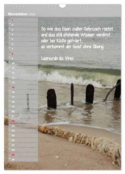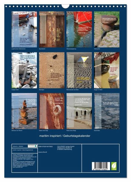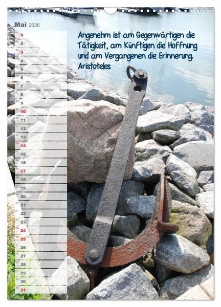 QUALITÄT - Hochwertiger Fotokalender mit 12 wunderschönen Motiven auf lichtbeständigem Bilderdruckpapier, robuste Spiralbindung mit Aufhängebügel.NACHHALTIG - deutliche Abfallreduzierung durch bedarfsgerechte Einzelstückfertigung, umweltfreundliches FSC-zertifiziertes Papier, Produktion in Deutschland, klimabewusste Logistik.PERFEKTES GESCHENK - Kalender für Freunde und Familie, für Kinder und Erwachsene, jung und alt, zu Weihnachten, Geburtstag oder zwischendurch.VIELFALT - Bildkalender in verschiedenen Formaten, z.B. DIN A5, DIN A4, DIN A3 sowie DIN A2. Ob Naturmotiv, Gemälde oder Fotos, ideal für ein persönliches Wohlfühlambiente.Maritime Ausschnitte mit Zitaten berühmter Persönlichkeiten regen zum Nachdenken an. von Autor(in): Jessica Brandt
