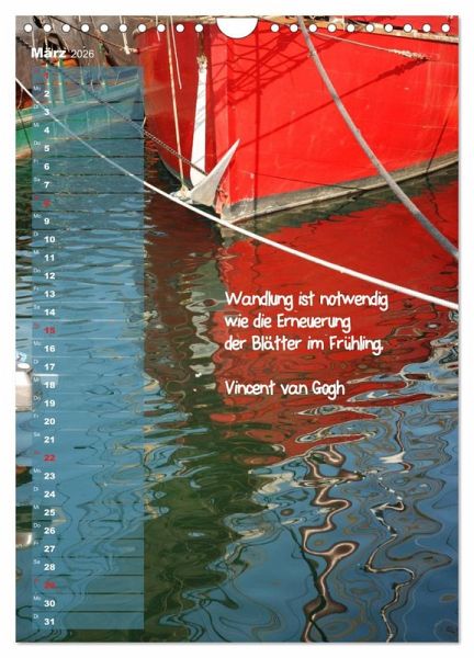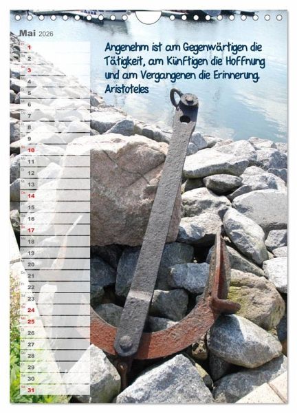 QUALITÄT - Hochwertiger Fotokalender mit 12 wunderschönen Motiven auf lichtbeständigem Bilderdruckpapier, robuste Spiralbindung mit Aufhängebügel.NACHHALTIG - deutliche Abfallreduzierung durch bedarfsgerechte Einzelstückfertigung, umweltfreundliches FSC-zertifiziertes Papier, Produktion in Deutschland, klimabewusste Logistik.PERFEKTES GESCHENK - Kalender für Freunde und Familie, für Kinder und Erwachsene, jung und alt, zu Weihnachten, Geburtstag oder zwischendurch.VIELFALT - Bildkalender in verschiedenen Formaten, z.B. DIN A5, DIN A4, DIN A3 sowie DIN A2. Ob Naturmotiv, Gemälde oder Fotos, ideal für ein persönliches Wohlfühlambiente.Maritime Ausschnitte mit Zitaten berühmter Persönlichkeiten regen zum Nachdenken an. von Autor(in): Jessica Brandt
