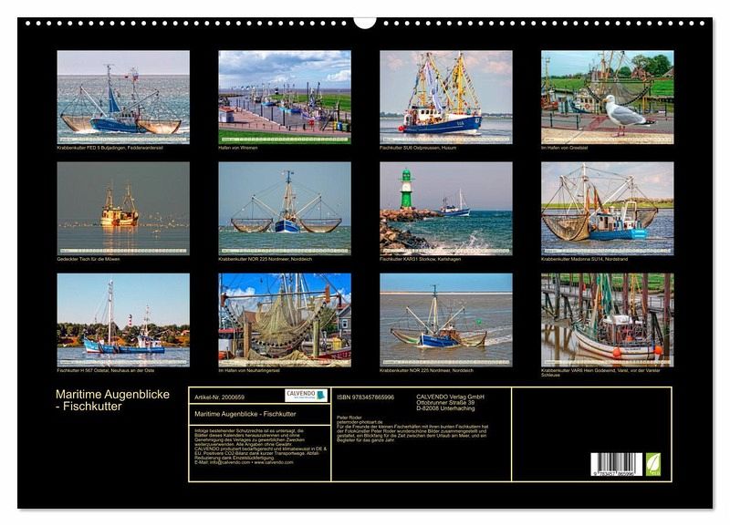 Für die Freunde der kleinen Fischerhäfen mit ihren bunten Fischkuttern hat der Fotokünstler Peter Roder wunderschöne Bilder zusammengestellt und gestaltet, ein Blickfang für die Zeit zwischen dem Urlaub am Meer, und ein Begleiter für das ganze Jahr.