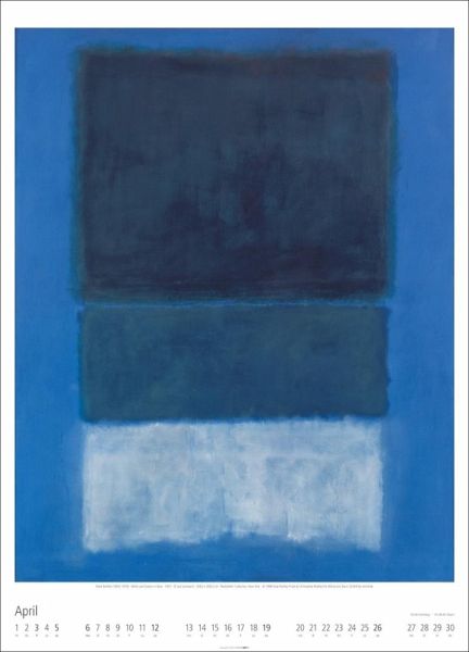 Seine zumeist großformatigen Gemälde mit horizontal geschichteten Farbflächen auf monochromem Grund haben sich als Inbegriff klassischer Bilder der Moderne in unser Bildgedächtnis eingeprägt. Auch die 2026-Ausgabe des Athesia (Weingarten) Kalenderverlages präsentiert wieder zwölf Werke aus verschiedenen Schaffensperioden des Künstlers, wobei der Schwerpunkt auf den späten 40er und den 50er Jahre liegt. Hier werden die Gemälde (meist ohne Titel oder einfach mit einer Nummer versehen) von großen, ineinanderfließenden Farbfeldern bestimmt.