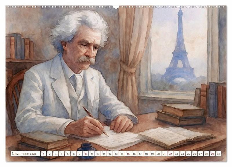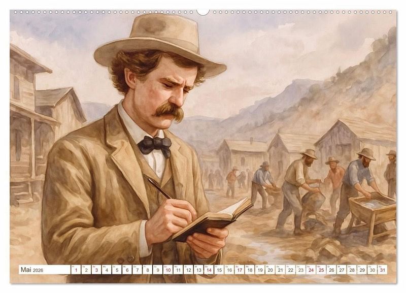 Dieser Kalender lädt ein zu einer bildgewaltigen Reise durch das Leben und Werk von Mark Twain - dem wohl bekanntesten Humoristen und Erzähler des amerikanischen 19. Jahrhunderts. Die kunstvollen Illustrationen, die Steffani Lehmann mit Unterstützung einer KI editiert hat, erzählen von Abenteuer, Gesellschaftskritik und menschlicher Tiefe. Ein besonderer Kalender für Literaturliebhaber und Amerika-Fans.