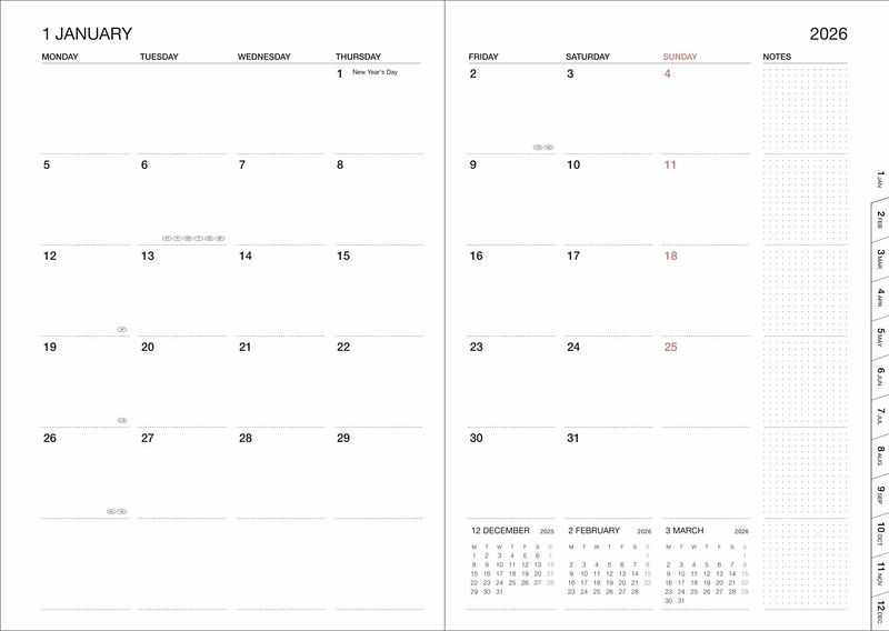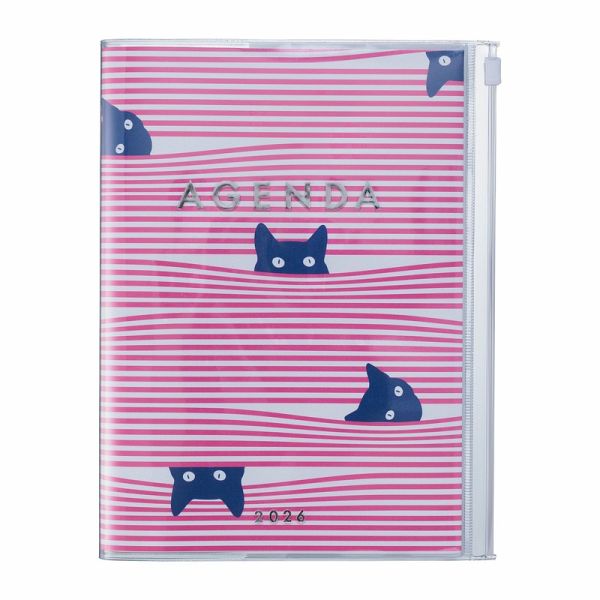 Internationaler Kalender (FSC-zertifiziertes Papier) in A5 mit patentierter Zipp-Reißverschluss-Hülle, in der sich z.B. Stifte, Tickets, Mobiltelefone praktisch verstauen lassen. Der Touchscreen von Smartphones kann durch die PVC-Hülle (produziert mit sehr reduziertem Phthalatgehalt) von außen bedient werden. Kalendarium mit 16 Monaten, beginnend mit September 2025. Internationale und deutsche Feiertage. Eine Doppelseite zum Planen pro Woche, monatliche Übersichten.