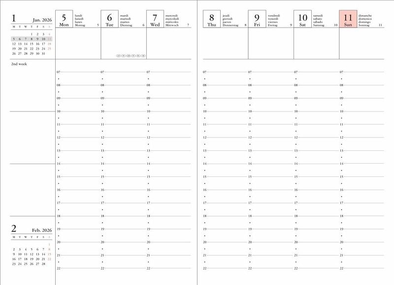 Internationaler Kalender (FSC-zertifiziertes Papier) in A6 mit patentierter Zipp-Reißverschluss-Hülle, in der sich z.B. Stifte, Tickets, Mobiltelefone praktisch verstauen lassen. Der Touchscreen von Smartphones kann durch die PVC-Hülle (produziert mit sehr reduziertem Phthalatgehalt) von außen bedient werden. Kalendarium mit 16 Monaten, beginnend mit September 2025. Internationale und deutsche Feiertage. Eine Doppelseite zum Planen pro Woche, monatliche Übersichten.