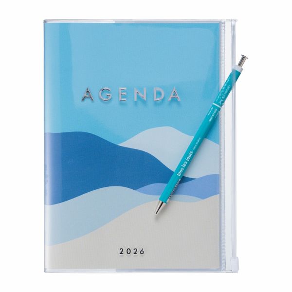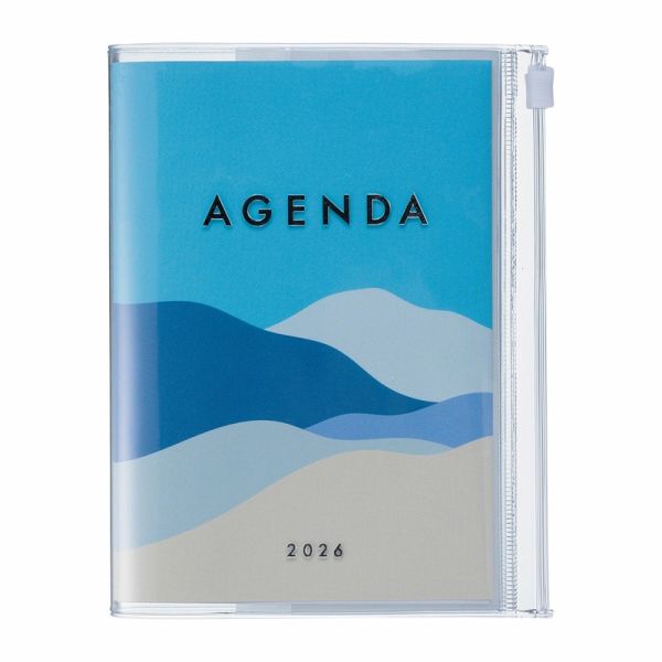 Internationaler Kalender (FSC-zertifiziertes Papier) in A6 mit patentierter Zipp-Reißverschluss-Hülle, in der sich z.B. Stifte, Tickets, Mobiltelefone praktisch verstauen lassen. Der Touchscreen von Smartphones kann durch die PVC-Hülle (produziert mit sehr reduziertem Phthalatgehalt) von außen bedient werden. Kalendarium mit 16 Monaten, beginnend mit September 2025. Internationale und deutsche Feiertage. Eine Doppelseite zum Planen pro Woche, monatliche Übersichten.