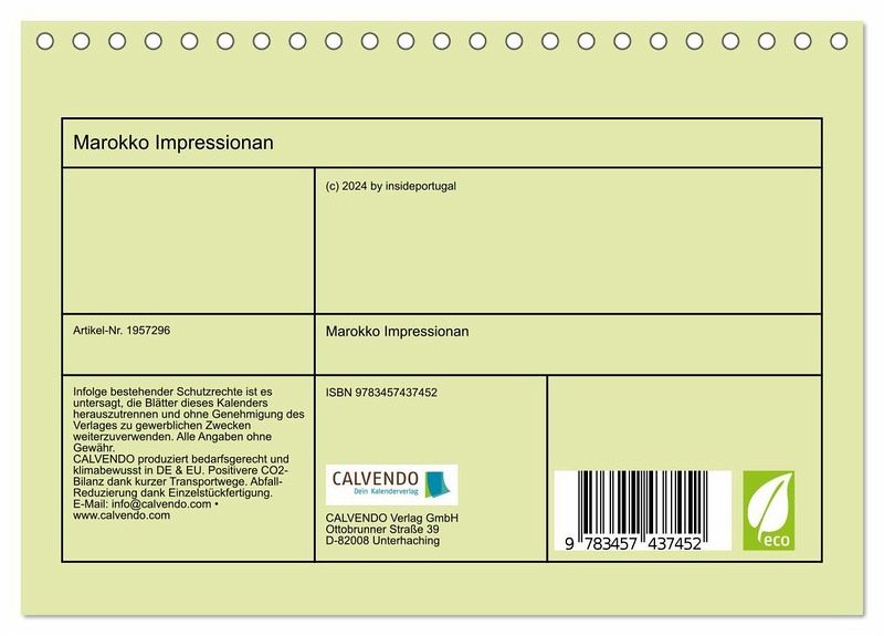 Marokko ist ein beliebtes Urlaubsland. Die Wüsten und die einzigartige Kultur und Architektur tragen zu einem unvergesslichen Erlebnis bei. Dieser Wandkalender zeigt die schönsten Impressionen im Verlauf eines Jahres