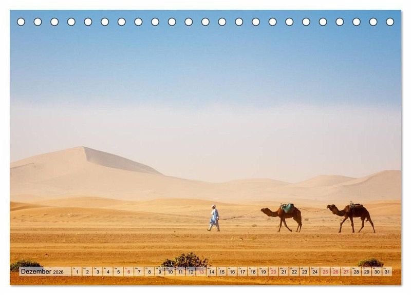 12 farbstarke Aufnahmen entführen Sie das ganze Jahr über nach Marokko zu den quirligen Bazaaren von Marrakesch und Fès, in die Hochlagen des Atlasgebirges, wo in abgelegenen Bergdörfer die Zeit seit 100 Jahren stehen geblieben zu sein scheint und in die endlosen Weiten der Sahara, wo einsame Karwanen sich ihren Weg durch wogende Sanddünen bahnen. Dieser qualitativ hochwertige Kalender gehört zur exklusiven CALVENDO Gold-Edition und wurde zusätzlich zum Regionalkalender des Jahres gekürt.