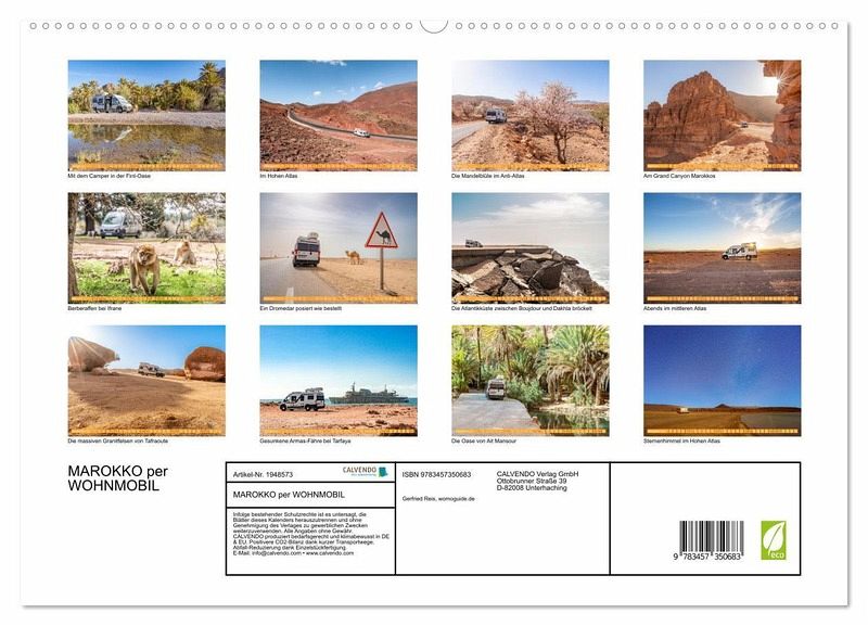 PREMIUM-LINIE - Brillanter Fotokalender mit 12 wunderschönen Motiven, Kunstdruck in Hochglanz in Museumsqualität.QUALITÄT - edle Materialien, stabile Rückwand mit 2 innovativen Einstecktaschen für eine optimale Präsentation an der Wand.NACHHALTIG - deutliche Abfallreduzierung durch bedarfsgerechte Einzelstückfertigung, umweltfreundliches FSC-zertifiziertes Papier, Produktion in Deutschland, klimabewusste Logistik.PERFEKTES GESCHENK - Kalender für Freunde und Familie, für Kinder und Erwachsene, jung und alt, zu Weihnachten, Geburtstag oder zwischendurch.Eine Reise durch Marokko per Wohnmobil von Autor(in): Gerfried Reis