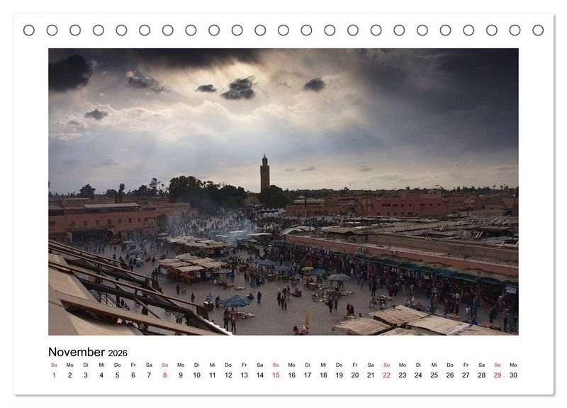 Marokko, ein Land der Kontraste! Der Kalender zeichnet sich aus durch die Liebe zum Detail. Faszinierende Fotos vom lebhaften Treiben in Marrakesch und atemberaubende Landschaften begleiten sie durch das Jahr.