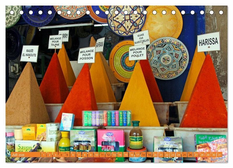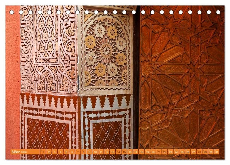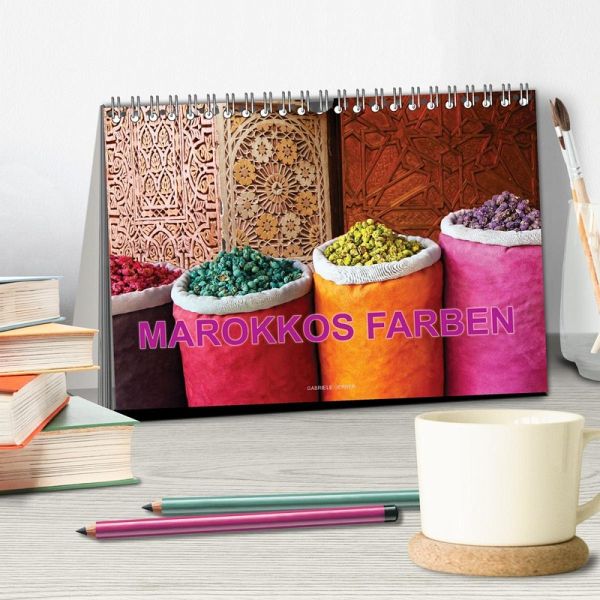Erleben Sie die faszinierende Welt Marokkos jeden Monat aufs Neue. Dieser außergewöhnliche Kalender nimmt Sie mit auf eine visuelle Reise durch eines der farben- und kulturreichsten Länder der Welt. Jeder Monat bietet Ihnen wunderschöne Fotografien, die die lebhaften Farben und die unvergessliche Schönheit Marokkos einfangen. Die beeindruckenden Bilder zeigen kunstvolle Fliesenmustern, handgefertigten Textilien, tolle Türen und Gewürze. Der Kalender "Marokkos Farben" ist ein täglicher Genuss für Ihre Sinne und eine inspirierende Erinnerung an die faszinierenden Nuancen und den kulturellen Reichtum eines der faszinierendsten Länder Nordafrikas. Ideal für alle, die sich für Reisen, Kultur und Schönheit begeistern - lassen Sie sich jeden Monat von der Magie Marokkos verzaubern.