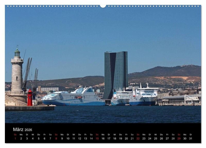 Marseille ist die wichtigste französische und eine bedeutende europäische Hafenstadt, Metropole an der Côte d'Azur und Tor zum Mittelmeer. Dieser Kalender zeigt Aufnahmen der Stadt mit Blick auf das Wasser bzw. vom Wasser aus.