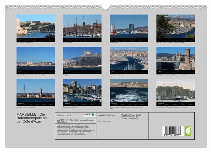QUALITÄT - Hochwertiger Fotokalender mit 12 wunderschönen Motiven auf lichtbeständigem Bilderdruckpapier, robuste Spiralbindung mit Aufhängebügel.NACHHALTIG - deutliche Abfallreduzierung durch bedarfsgerechte Einzelstückfertigung, umweltfreundliches FSC-zertifiziertes Papier, Produktion in Deutschland, klimabewusste Logistik.PERFEKTES GESCHENK - Kalender für Freunde und Familie, für Kinder und Erwachsene, jung und alt, zu Weihnachten, Geburtstag oder zwischendurch.VIELFALT - Bildkalender in verschiedenen Formaten, z.B. DIN A5, DIN A4, DIN A3 sowie DIN A2. Ob Naturmotiv, Gemälde oder Fotos, ideal für ein persönliches Wohlfühlambiente.Marseille, die Hafenmetropole an der Côte d'Azur vom Wasser aus gesehen von Autor(in): Ruffiamonte