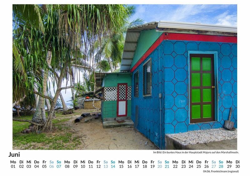 Entdecken Sie die unberührte Schönheit der Marshallinseln mit unserem exklusiven Wandkalender! Lassen Sie sich Monat für Monat von atemberaubenden Motiven dieser paradiesischen Inselgruppe verzaubern - von kristallklarem Wasser bis hin zu traumhaften Stränden. Jedes Bild wurde sorgfältig ausgewählt und auf hochwertigem, lichtbeständigem Bilderdruckpapier gedruckt, um Ihnen das ganze Jahr über Freude zu bereiten. Gedruckt in Deutschland auf FSC-zertifiziertem Papier, vereint dieser Kalender Nachhaltigkeit und höchste Qualität. Holen Sie sich ein Stück Südsee-Idylle nach Hause und lassen Sie sich täglich inspirieren! Perfekt auch als Geschenk für Reisefans. Hochwertig Erleben Sie ein Jahr voller Eleganz mit unserem Premium-Fotokalender. Jedes der 12 Motive ist auf hochwertigem, lichtbeständigem Bilderdruckpapier gedruckt, um die Lebendigkeit jedes Bildes zu bewahren. Die robuste Spiralbindung gewährleistet Langlebigkeit und einfache Handhabung. Nachhaltig Unser Engagement für die Umwelt spiegelt sich in jedem Exemplar wider. Durch die Produktion auf Abruf reduzieren wir signifikant unseren Abfall. Wir verwenden ausschließlich umweltfreundliches, FSC-zertifiziertes Papier. Stolz gefertigt in Deutschland, achten wir bei unserer Logistik auf Klimaschutz, um unseren ökologischen Fußabdruck zu minimieren. Das ideale Geschenk Dieser Kalender ist das perfekte Präsent für jeden Anlass - ob Weihnachten, Geburtstage oder einfach als liebevolle Aufmerksamkeit zwischendurch. Geeignet für Freunde, Familie, Kinder und Erwachsene gleichermaßen, bereichert er jedes Zuhause mit seiner Vielfalt und Schönheit, unabhängig vom Alter der Beschenkten.
