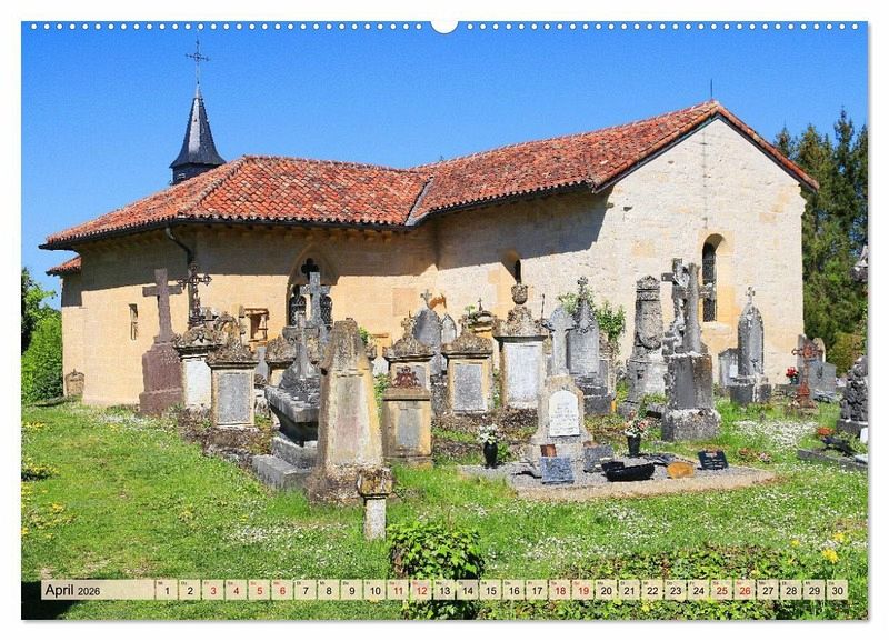 April: Friedhof Saint-Hilaire mit seiner romanischen Kirche