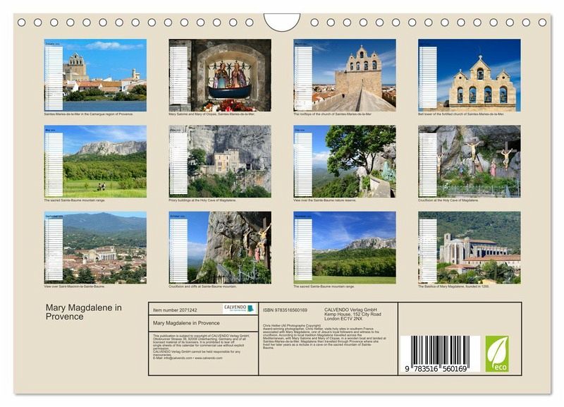 QUALITY - High-quality photo calendar with 12 beautiful images on light-resistant paper, robust spiral binding with hanger.SUSTAINABLE - Significant wastereduction due to print-on-demand production, environmentally friendly FSC-certified paper, produced in the UK, climate-conscious logistical processes.PERFECT GIFT - calendars for friends and family, for children, all ages and all occasions, from Christmas to birthdays and everything in between.LOTS OF CHOICE - Wall calendars in different sizes (DIN A4 and DIN A3), for any topic and personal taste, featuring photography, painting and illustrations.Beutiful photographs of holy sites in southern France associated with Mary Magdalene., author: Chris Hellier