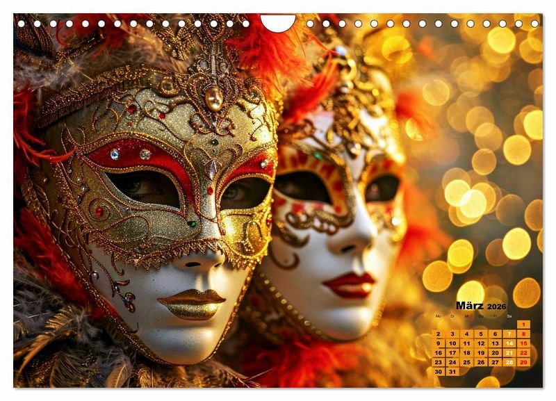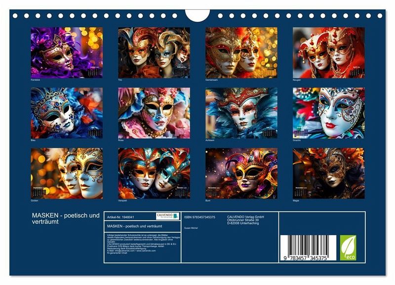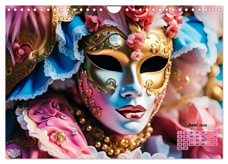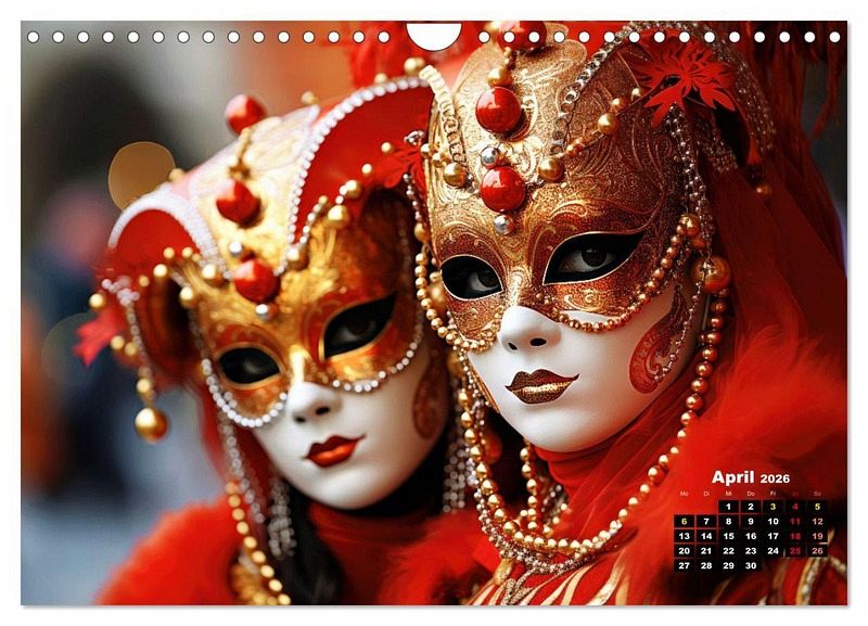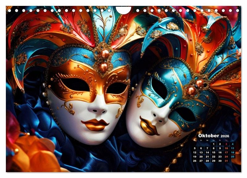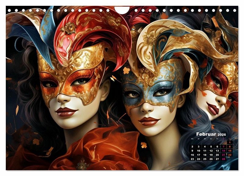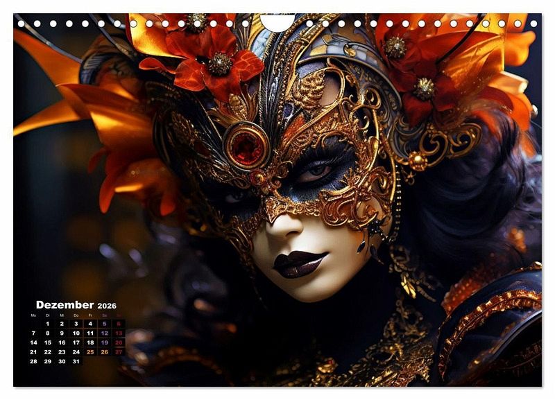 Entdecken Sie die Magie der Masken - ein Spiel aus Verhüllung und Offenbarung, ein Tanz der Poesie auf Ihrem Gesicht. Tauchen Sie ein in den Charme der Verträumtheit und lassen Sie Ihre Persönlichkeit durch diese einzigartigen Kunstwerke strahlen. Tauchen Sie ein in ein Universum voller Eleganz und Mystik, in dem jede Maske eine Geschichte zu erzählen hat. Der Kalender entstand mit Hilfe der KI.