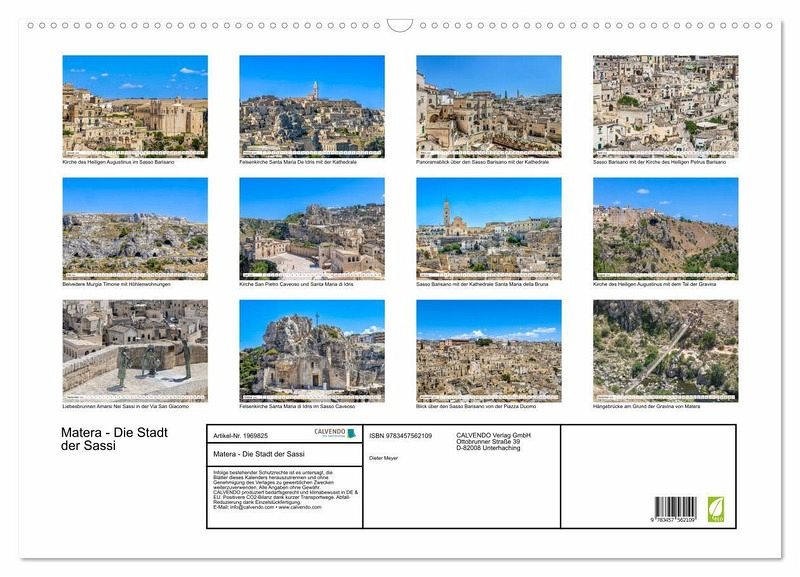 QUALITÄT - Hochwertiger Fotokalender mit 12 wunderschönen Motiven auf lichtbeständigem Bilderdruckpapier, robuste Spiralbindung mit Aufhängebügel.NACHHALTIG - deutliche Abfallreduzierung durch bedarfsgerechte Einzelstückfertigung, umweltfreundliches FSC-zertifiziertes Papier, Produktion in Deutschland, klimabewusste Logistik.PERFEKTES GESCHENK - Kalender für Freunde und Familie, für Kinder und Erwachsene, jung und alt, zu Weihnachten, Geburtstag oder zwischendurch.VIELFALT - Bildkalender in verschiedenen Formaten, z.B. DIN A5, DIN A4, DIN A3 sowie DIN A2. Ob Naturmotiv, Gemälde oder Fotos, ideal für ein persönliches Wohlfühlambiente.Einzigartige Höhlensiedlungen von Matera in Süditalien und europäische Kulturhauptstadt von 2019. von Autor(in): Dieter Meyer