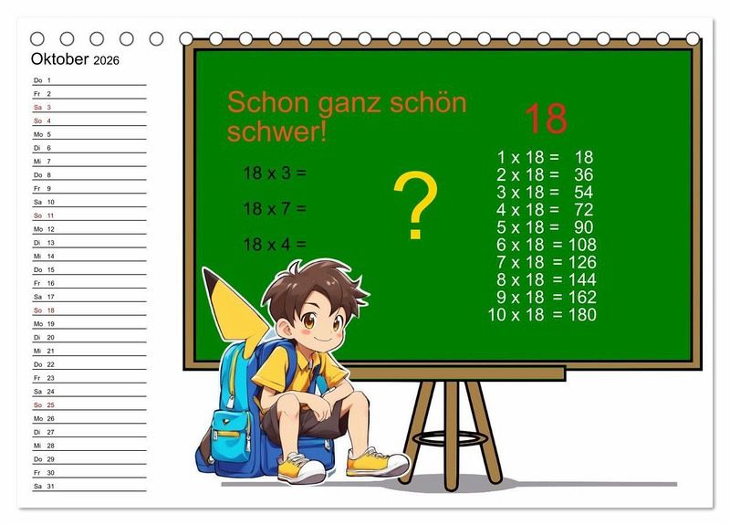 Mit Einsatz der KI helfen lustige Comicfiguren Grundschulkindern beim Lösen von Mathematikaufgaben. Auf 12 Seiten wird das Kleine und große Einmaleins vorgestellt und gelöst. Für die ganz fleißigen Kids gibt es jeden Monat auch drei Aufgaben zu lösen. Außerdem gibt es genügend Platz, um wichtige Termine einzutragen. Wünsche viel Spaß über das ganze Jahr.