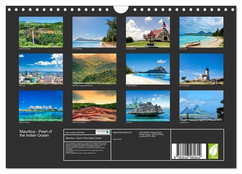 QUALITY - High-quality photo calendar with 12 beautiful images on light-resistant paper, robust spiral binding with hanger.SUSTAINABLE - Significant waste reduction due to print-on-demand production, environmentally friendly FSC-certified paper, produced in the UK, climate-conscious logistical processes.PERFECT GIFT - calendars for friends and family, for children, all ages and all occasions, from Christmas to birthdays and everything in between.LOTS OF CHOICE - Wall calendars in different sizes (DIN A4 and DIN A3), for any topic and personal taste, featuring photography, painting and illustrations.Sculpted by volcanoes, Mauritius is a paradise island, author: Stefan Becker