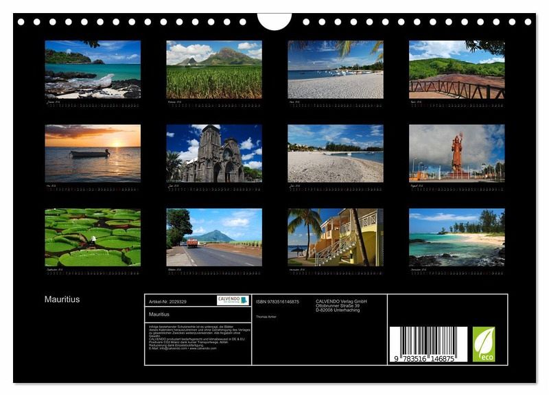 Die Fotos auf diesem Kalender zeigen Ihnen die faszinierende Vielfalt der traumhaften Insel im Indischen Ozean. Faszinierende Strände, beeindruckende Naturparks, ein Besuch im Botanischen Garten oder ein Ausflug durch die Zuckerrohrfelder zum heiligen See der Hindus sowie Chamarel mit seiner siebenfarbigen Erde, hier können Sie von einem Urlaub auf Mauritius träumen.