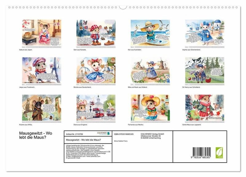 Entdecke die bunte Welt der Mäuse in traditioneller Kleidung! Unser zauberhafter Kindermäuse-Kalender entführt dich auf eine spannende Reise durch 12 Länder rund um den Globus. Jeder Monat überrascht dich mit süßen Mäusebildern, die von der talentierten KI-Künstlerin Silvia Siebler-Ferry liebevoll gestaltet wurden.