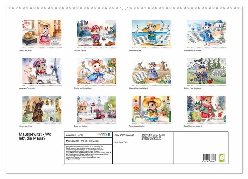 Entdecke die bunte Welt der Mäuse in traditioneller Kleidung! Unser zauberhafter Kindermäuse-Kalender entführt dich auf eine spannende Reise durch 12 Länder rund um den Globus. Jeder Monat überrascht dich mit süßen Mäusebildern, die von der talentierten KI-Künstlerin Silvia Siebler-Ferry liebevoll gestaltet wurden.