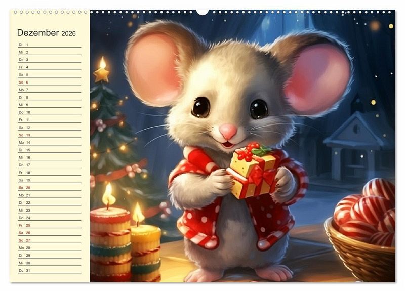 Schmunzle dich durch das Jahr mit diesem süßen Cartoon-Mäuse-Kalender! Die niedlichen Nagetiere bezaubern und jeder Monat versprüht einen Hauch von lustigem Mäusealltag, der dir ein Lächeln ins Gesicht zaubert. Diese bunten Illustrationen wurde mit Hilfe von KI erstellt und sind ein witziges Geschenk, welches das ganze Jahr über Freude bringt!