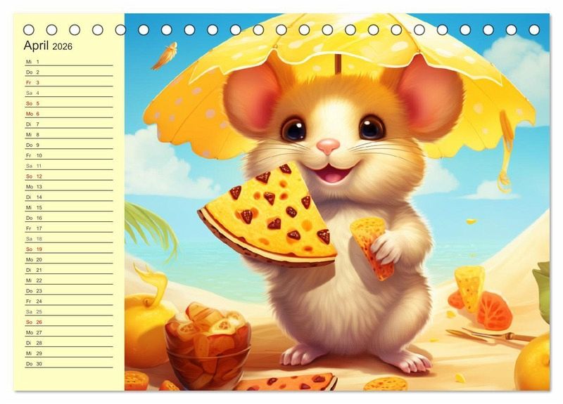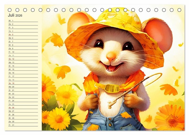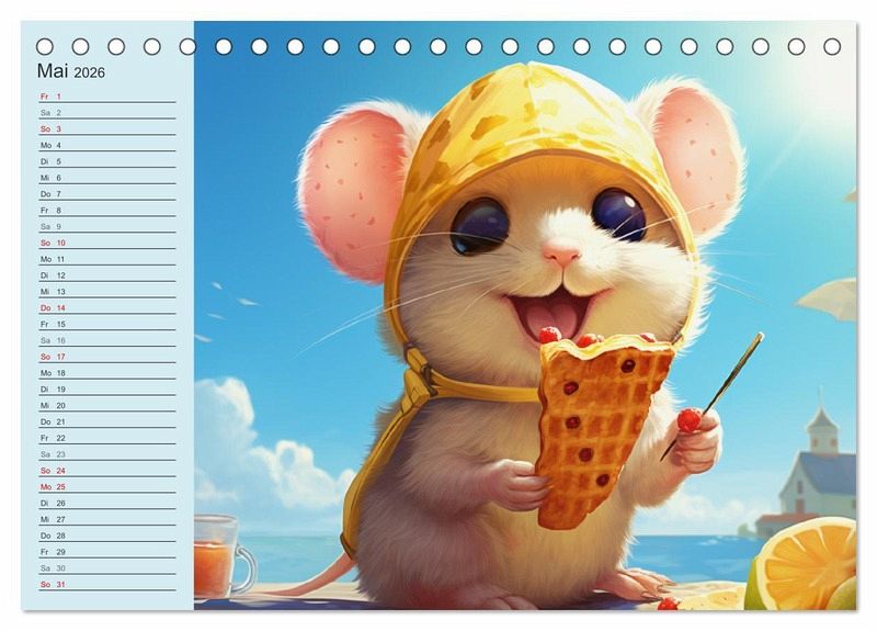 Schmunzle dich durch das Jahr mit diesem süßen Cartoon-Mäuse-Kalender! Die niedlichen Nagetiere bezaubern und jeder Monat versprüht einen Hauch von lustigem Mäusealltag, der dir ein Lächeln ins Gesicht zaubert. Diese bunten Illustrationen wurde mit Hilfe von KI erstellt und sind ein witziges Geschenk, welches das ganze Jahr über Freude bringt!
