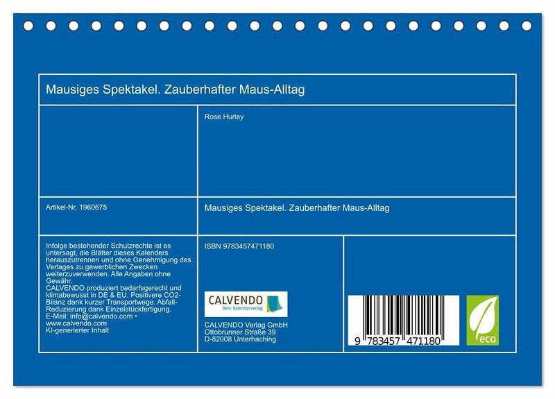 QUALITÄT - Hochwertiger Fotokalender mit 12 wunderschönen Motiven auf lichtbeständigem Bilderdruckpapier, robuste Spiralbindung.NACHHALTIG - deutliche Abfallreduzierung durch bedarfsgerechte Einzelstückfertigung, umweltfreundliches FSC-zertifiziertes Papier, Produktion in Deutschland, klimabewusste Logistik.PERFEKTES GESCHENK - Kalender für Freunde und Familie, für Kinder und Erwachsene, jung und alt, zu Weihnachten, Geburtstag oder zwischendurch.VIELFALT - Bildkalender in verschiedenen Formaten, z.B. DIN A5, DIN A4, DIN A3 sowie DIN A2. Ob Naturmotiv, Gemälde oder Fotos, ideal für ein persönliches Wohlfühlambiente.Ein jahr voller Mäusemagie mit kleinen Cartoon-Helden von Autor(in): Rose Hurley