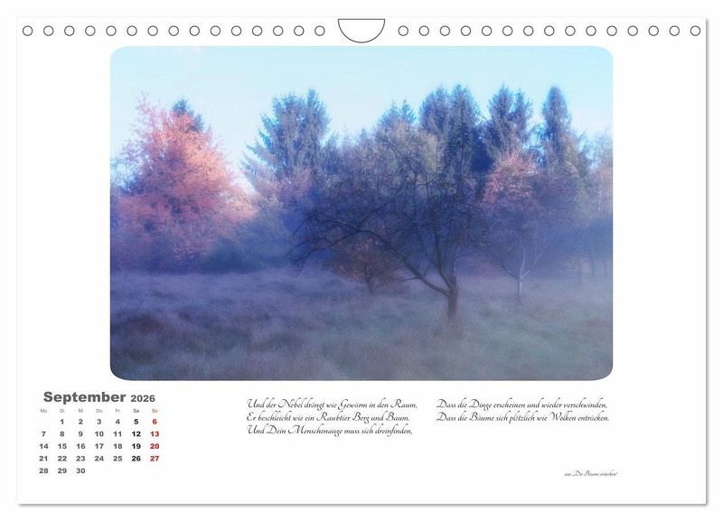 QUALITÄT - Hochwertiger Fotokalender mit 12 wunderschönen Motiven auf lichtbeständigem Bilderdruckpapier, robuste Spiralbindung mit Aufhängebügel.NACHHALTIG - deutliche Abfallreduzierung durch bedarfsgerechte Einzelstückfertigung, umweltfreundliches FSC-zertifiziertes Papier, Produktion in Deutschland, klimabewusste Logistik.PERFEKTES GESCHENK - Kalender für Freunde und Familie, für Kinder und Erwachsene, jung und alt, zu Weihnachten, Geburtstag oder zwischendurch.VIELFALT - Bildkalender in verschiedenen Formaten, z.B. DIN A5, DIN A4, DIN A3 sowie DIN A2. Ob Naturmotiv, Gemälde oder Fotos, ideal für ein persönliches Wohlfühlambiente.Die impressionistische Lyrik Max Dauthendeys in Waldbildern umgesetzt von Autor(in): Wally