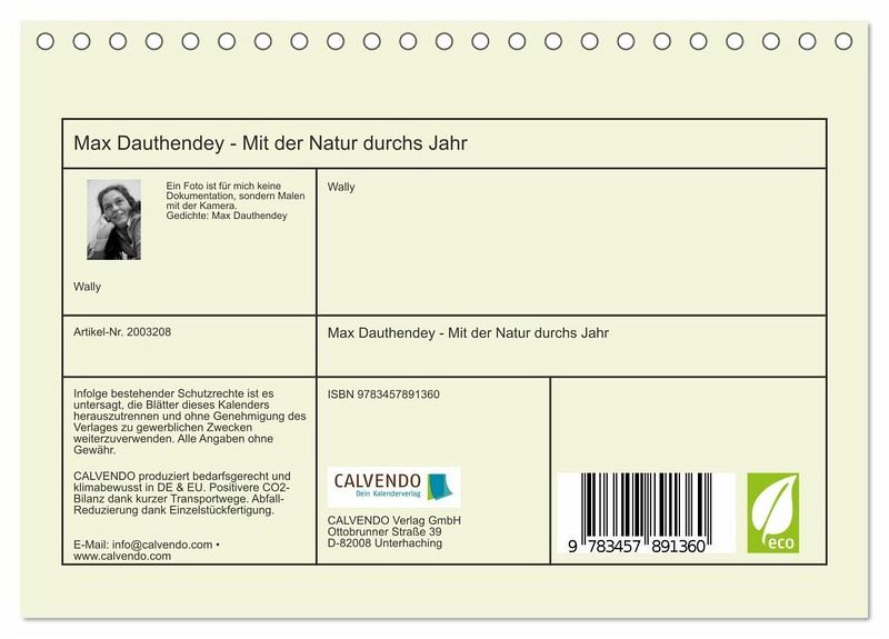 QUALITÄT - Hochwertiger Fotokalender mit 12 wunderschönen Motiven auf lichtbeständigem Bilderdruckpapier, robuste Spiralbindung.NACHHALTIG - deutliche Abfallreduzierung durch bedarfsgerechte Einzelstückfertigung, umweltfreundliches FSC-zertifiziertes Papier, Produktion in Deutschland, klimabewusste Logistik.PERFEKTES GESCHENK - Kalender für Freunde und Familie, für Kinder und Erwachsene, jung und alt, zu Weihnachten, Geburtstag oder zwischendurch.VIELFALT - Bildkalender in verschiedenen Formaten, z.B. DIN A5, DIN A4, DIN A3 sowie DIN A2. Ob Naturmotiv, Gemälde oder Fotos, ideal für ein persönliches Wohlfühlambiente.Dauthendeys impressionistische Lyrik in Naturbildern umgesetzt von Autor(in): Wally