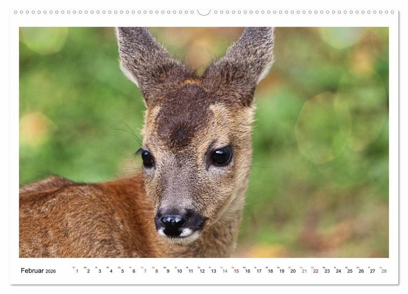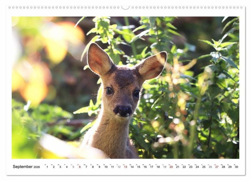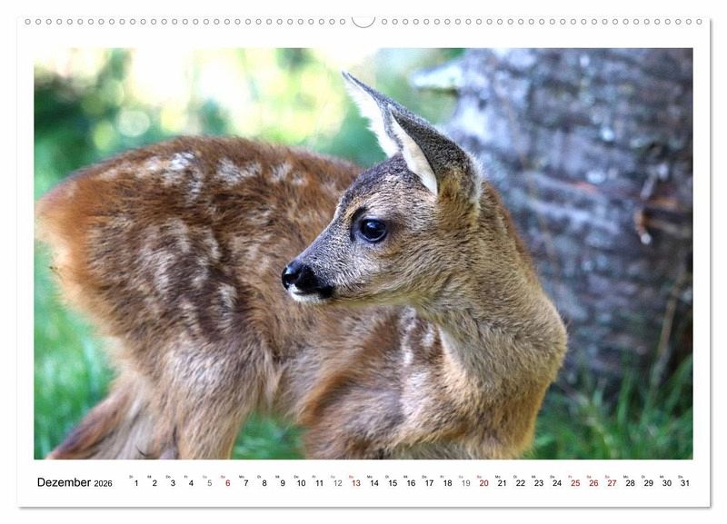 Rehe bringen normalerweise im Wonnemonat Mai ihre Kitze zur Welt, niedliche Tierkinder mit großen Augen, zum Verlieben süß. Der kleine Rehbock Max ist im August geboren, was sehr ungewöhnlich ist. Weil die Ricke ihn nicht versorgte, hat sich die Fotografin als Rehkitzretterin betätigt und ihn aufgezogen. Wunderschöne Aufnahmen entstanden in ihrem Garten, die Sie jeden Monat aufs Neue erfreuen werden.