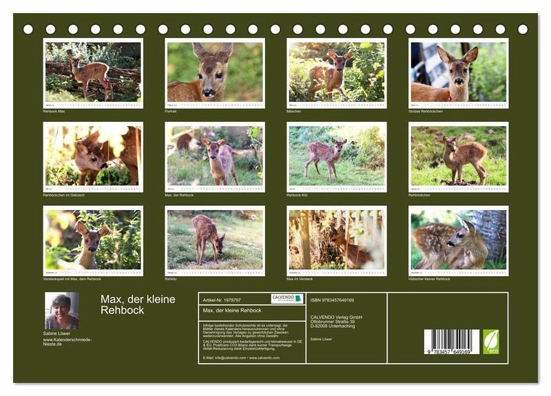 QUALITÄT - Hochwertiger Fotokalender mit 12 wunderschönen Motiven auf lichtbeständigem Bilderdruckpapier, robuste Spiralbindung.NACHHALTIG - deutliche Abfallreduzierung durch bedarfsgerechte Einzelstückfertigung, umweltfreundliches FSC-zertifiziertes Papier, Produktion in Deutschland, klimabewusste Logistik.PERFEKTES GESCHENK - Kalender für Freunde und Familie, für Kinder und Erwachsene, jung und alt, zu Weihnachten, Geburtstag oder zwischendurch.VIELFALT - Bildkalender in verschiedenen Formaten, z.B. DIN A5, DIN A4, DIN A3 sowieDIN A2. Ob Naturmotiv, Gemälde oder Fotos, ideal für ein persönliches Wohlfühlambiente.Bezaubernde Fotos des kleinen Rehböckchens Max von Autor(in): Sabine Löwer