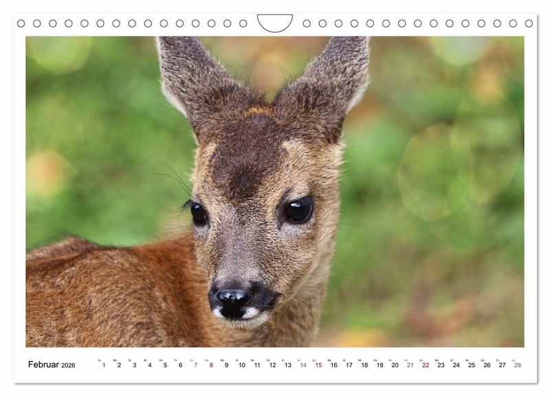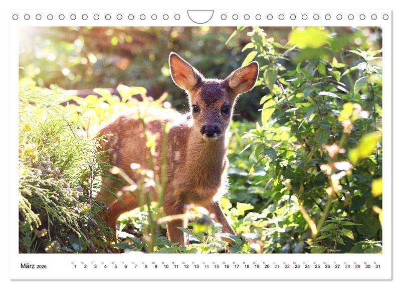 Rehe bringen normalerweise im Wonnemonat Mai ihre Kitze zur Welt, niedliche Tierkinder mit großen Augen, zum Verlieben süß. Der kleine Rehbock Max ist im August geboren, was sehr ungewöhnlich ist. Weil die Ricke ihn nicht versorgte, hat sich die Fotografin als Rehkitzretterin betätigt und ihn aufgezogen. Wunderschöne Aufnahmen entstanden in ihrem Garten, die Sie jeden Monat aufs Neue erfreuen werden.