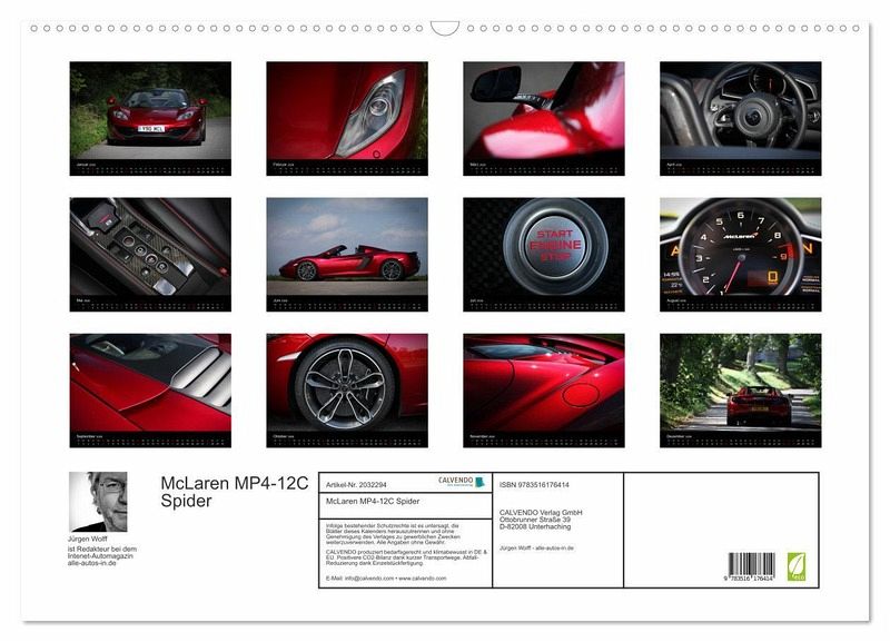 QUALITÄT - Hochwertiger Fotokalender mit 12 wunderschönen Motiven auf lichtbeständigem Bilderdruckpapier, robuste Spiralbindung mit Aufhängebügel.NACHHALTIG - deutliche Abfallreduzierung durch bedarfsgerechte Einzelstückfertigung, umweltfreundliches FSC-zertifiziertes Papier, Produktion in Deutschland, klimabewusste Logistik.PERFEKTES GESCHENK - Kalender für Freunde und Familie, für Kinder und Erwachsene, jung und alt, zu Weihnachten, Geburtstag oder zwischendurch.VIELFALT - Bildkalender in verschiedenen Formaten, z.B. DIN A5, DIN A4, DIN A3 sowie DIN A2. Ob Naturmotiv, Gemälde oder Fotos, ideal für ein persönliches Wohlfühlambiente.625 PS stark, knapp 330 km/h schnell und rund 270.000 Euro teuer - der McLaren MP4-12C in der offenen Spider-Version von Autor(in): Jürgen Wolff