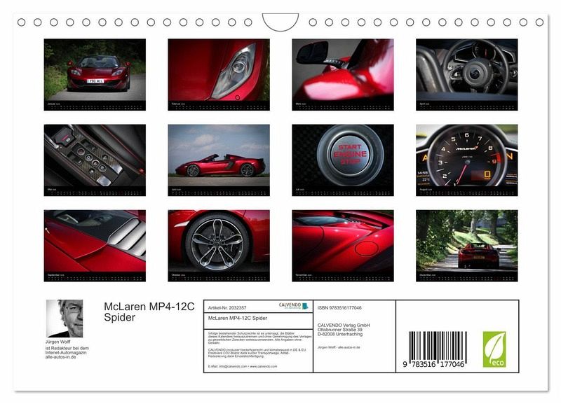 QUALITÄT - Hochwertiger Fotokalender mit 12 wunderschönen Motiven auf lichtbeständigem Bilderdruckpapier, robuste Spiralbindung mit Aufhängebügel.NACHHALTIG - deutliche Abfallreduzierung durch bedarfsgerechte Einzelstückfertigung, umweltfreundliches FSC-zertifiziertes Papier, Produktion in Deutschland, klimabewusste Logistik.PERFEKTES GESCHENK - Kalender für Freunde und Familie, für Kinder und Erwachsene, jung und alt, zu Weihnachten, Geburtstag oder zwischendurch.VIELFALT - Bildkalender in verschiedenen Formaten, z.B. DIN A5, DIN A4, DIN A3 sowie DIN A2. Ob Naturmotiv, Gemälde oder Fotos, ideal für ein persönliches Wohlfühlambiente.625 PS stark, knapp 330 km/h schnell und rund 270.000 Euro teuer - der McLaren MP4-12C in der offenen Spider-Version von Autor(in): Jürgen Wolff